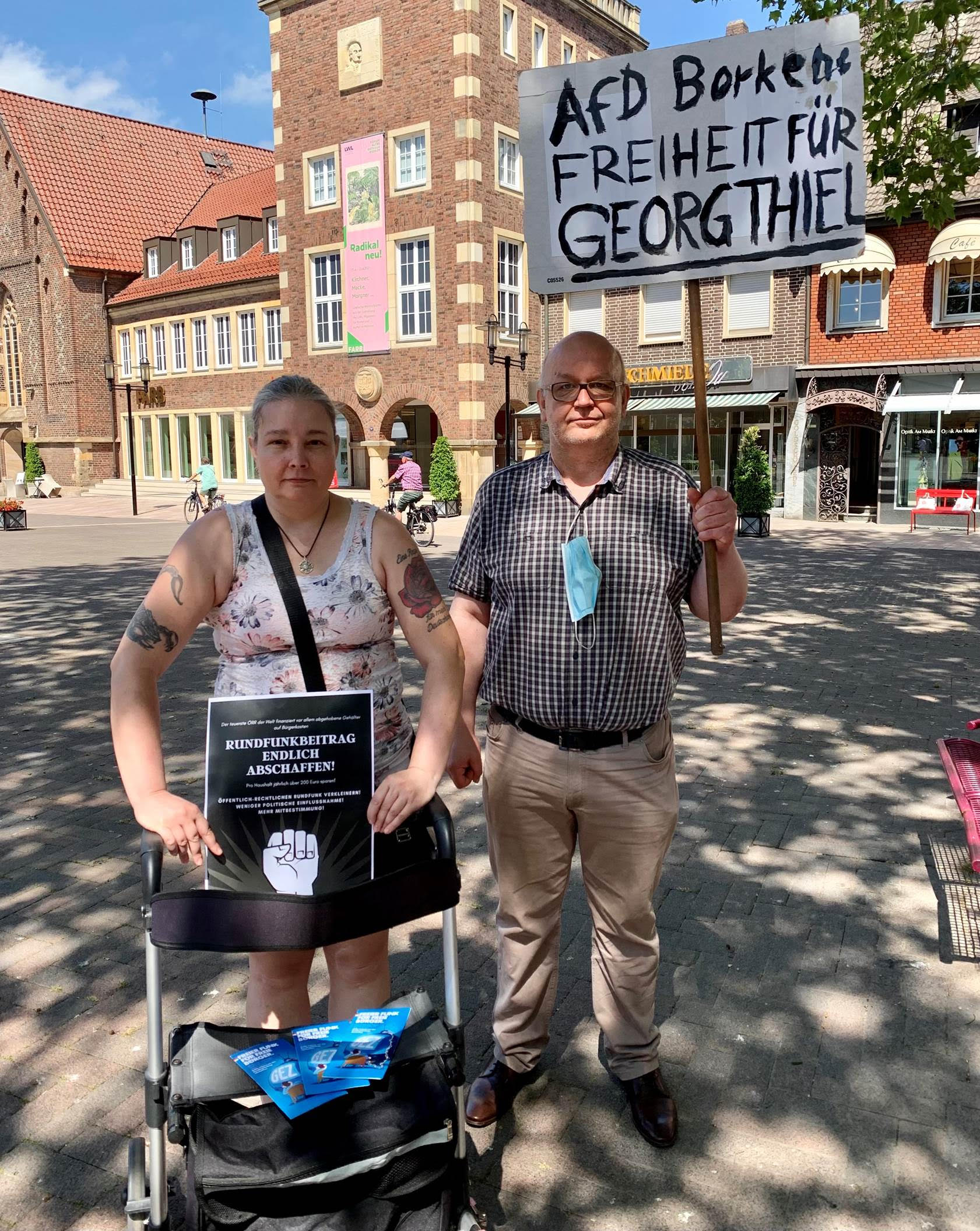 Noch immer sitzt der Borkener Georg Thiel hinter Gittern, weil er seine Rundfunkgebühren nicht bezahlt hat. Veranlasst wurde die Inhaftierung im Auftrag des WDR von der Stadt Borken und ihrer Bürgermeisterin Mechthild Schulze Hessing. Aus diesem Grund haben sich AfD-Mitglieder am Samstag wieder zu einer Mahnwache vor dem alten Borkener Rathaus getroffen, um für die sofortige Freilassung von Georg Thiel zu demonstrieren und das Thema erneut in der Öffentlichkeit sichtbar zu machen.