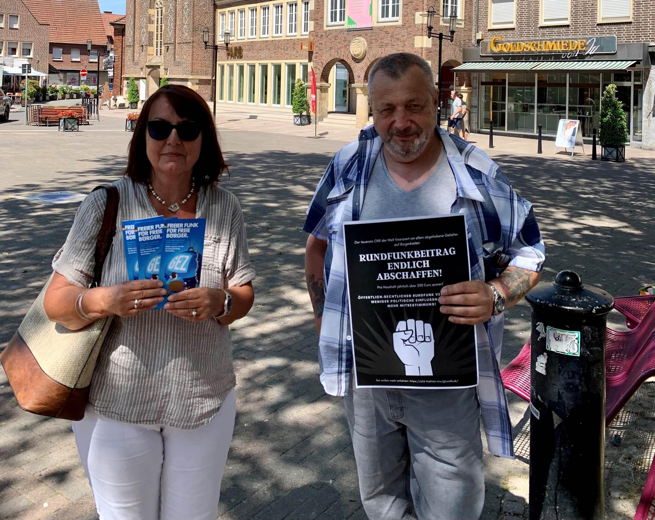 „Die AfD fordert die vollständige Abschaffung der Rundfunkzwangsgebühren“, erklärte Dr. Wienand Geuking bei der Mahnwache auf dem Borkener Marktplatz. „Außerdem sollte niemand wegen nicht bezahlter Rundfunkbeiträge in Höhe von ein paar hundert Euro über drei Monate ins Gefängnis gesteckt werden, während rotgrüne ‚Aktivisten‘ im Hambacher Forst oft ganz ohne Haft davonkommen, obwohl sie viel gravierendere Rechtsverstöße begehen.“ Das sei nicht verhältnismäßig. Geuking: „Frau Schulze Hessing, sorgen Sie für die sofortige Freilassung von Georg Thiel! Sie können es!“